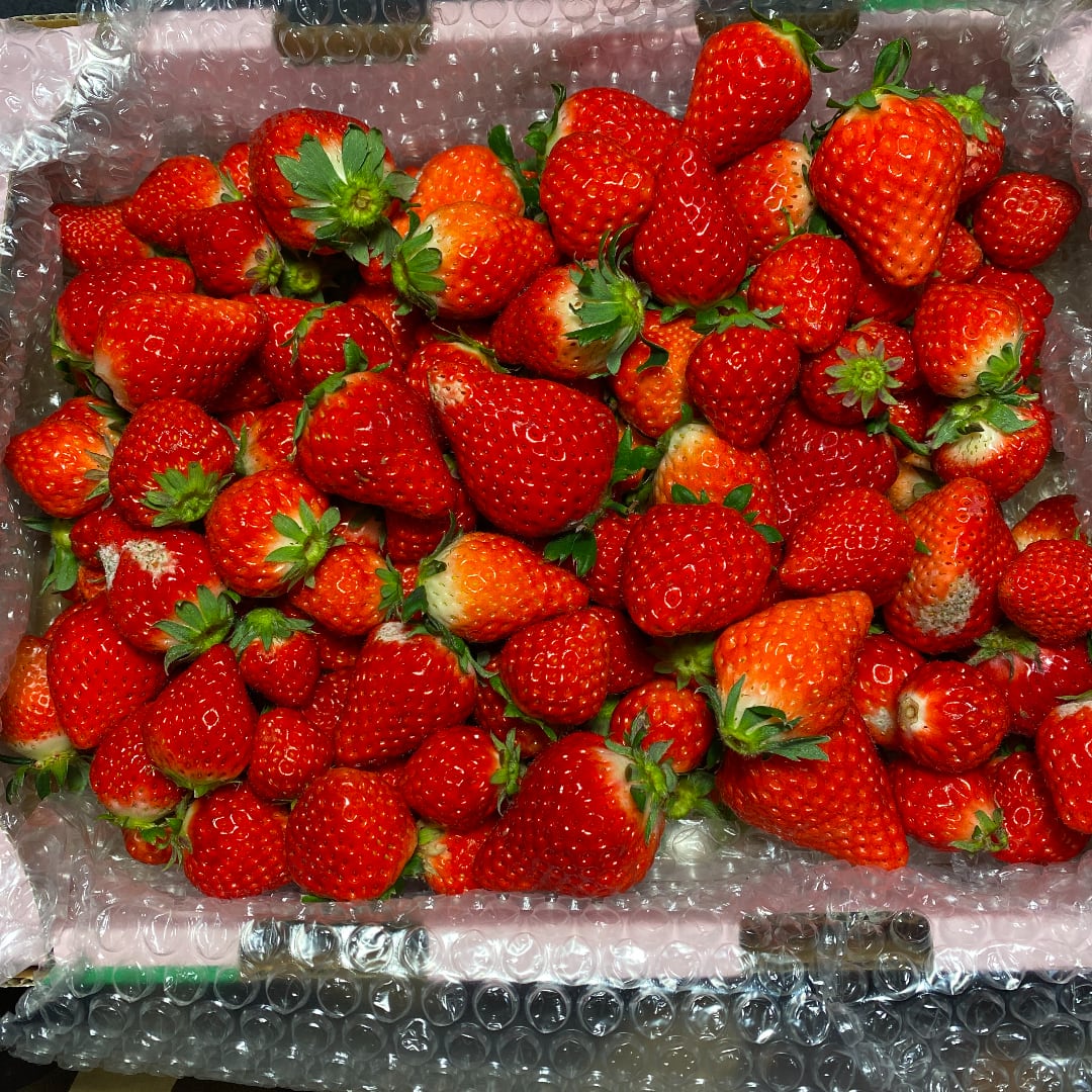 バラ詰めしておりますので、輸送中に揺れや振動で苺同士がぶつかりピンクや白っぽく変色することがあります。腐っているわけではありません。あくまで加工用として発送いたしますので、どうかご了承くださいませ。